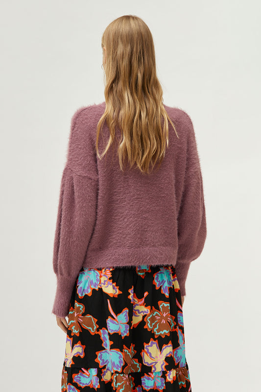 Sold outKnitted sweater with lilac texture