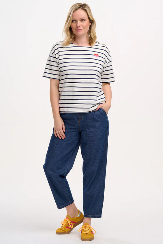 Kirby Breton Tee Top - Off-White/Navy, Split Heart