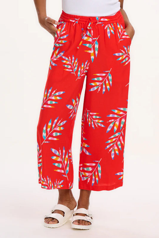 Ameera Cropped Wide Leg Trousers - Red, Rainbow Fronds