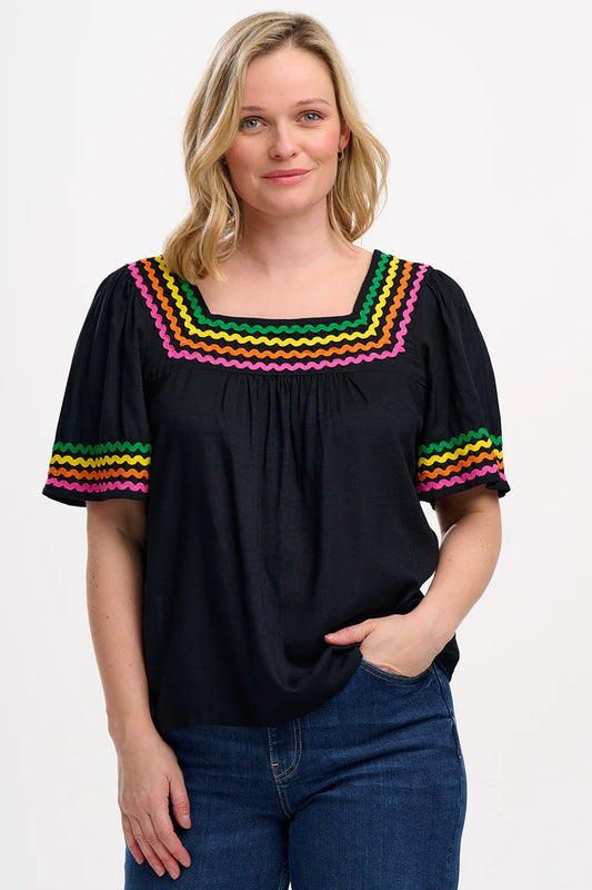 Sold outCarmen Top - Black, Rainbow Ric Rac