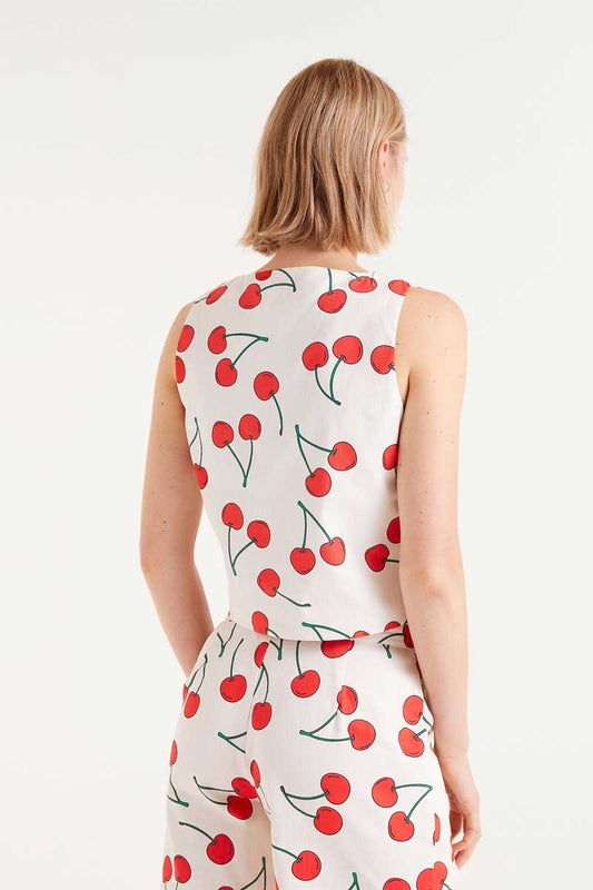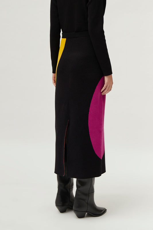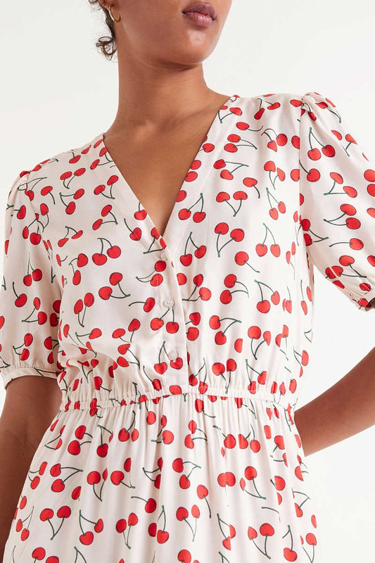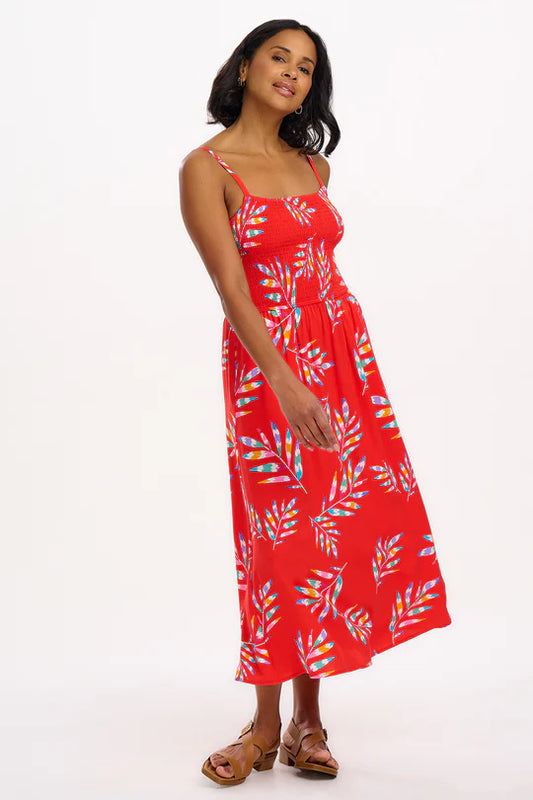 Christabel Shirred Midi Dress - Red, Rainbow Fronds