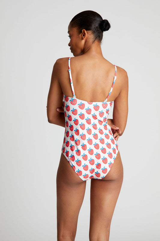 Strawberry Beach print straight neckline swimsuit