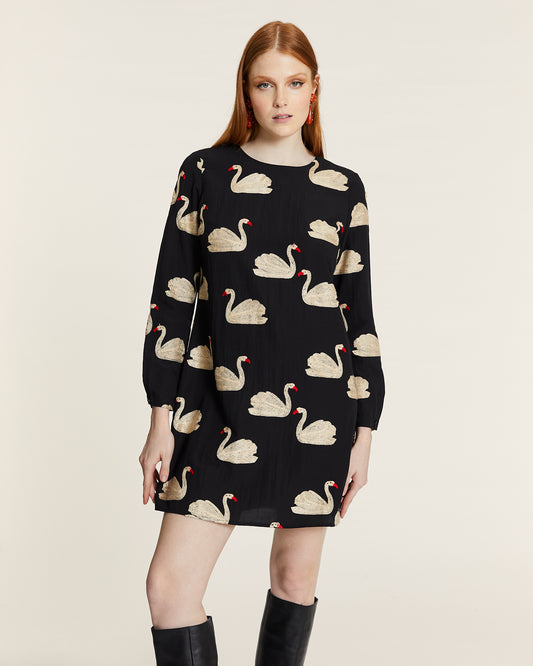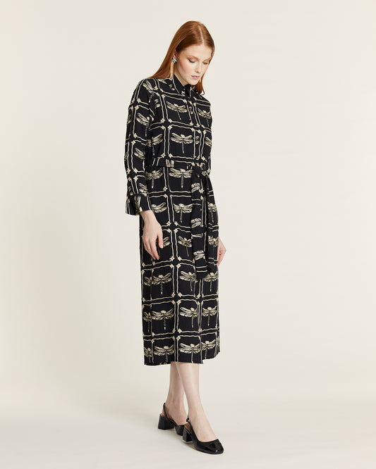 DRAGONFLIES EMBROIDERED BUTTON-UP DRESS