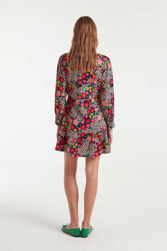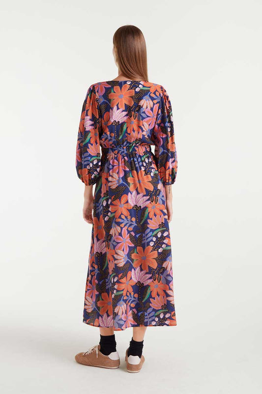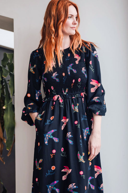 Darcie Shirred Midi Dress - Black, Rainbow Folk Bird