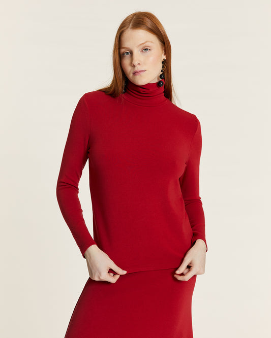 RED SWAN NECK KNIT TOP