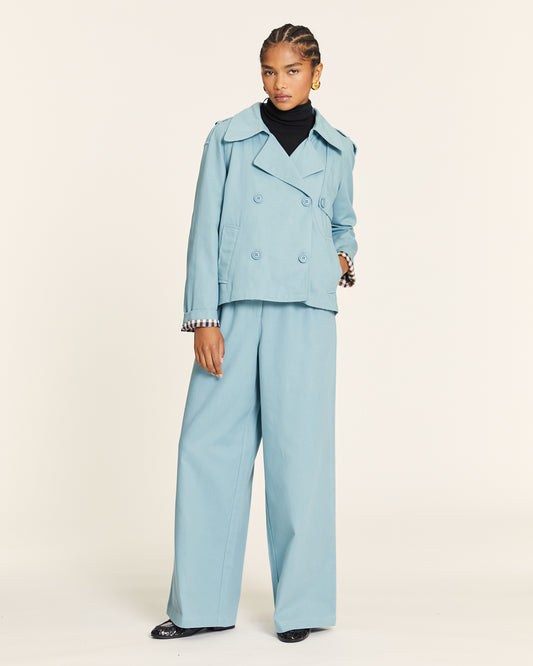 SHORT TRENCH COAT WITH BLUE CHECK LINING