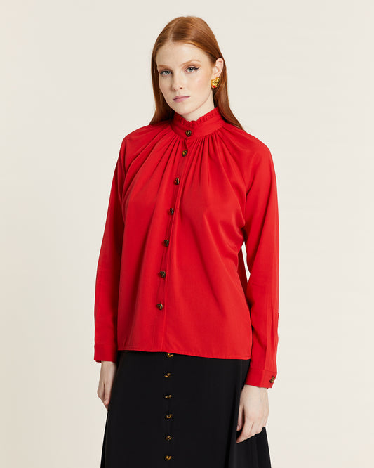Sold outHIGH NECK BLOUSE WITH RED BUTTON