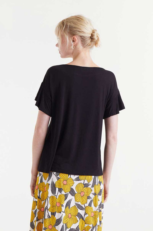 Black short sleeve ruffle t-shirt