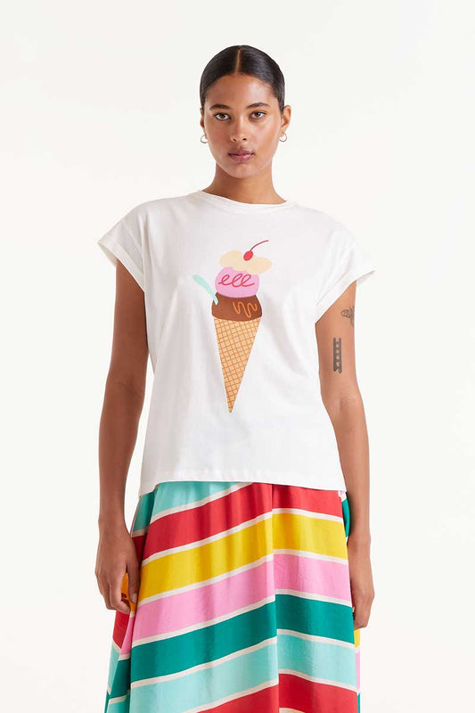 White ice cream print t-shirt