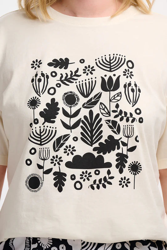 Kinsley Relaxed T-Shirt - Off-White/Black, Folk Floral
