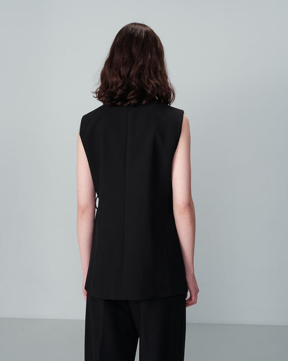With the tailored collar and straight cut, the NOMMY sleeveless blazer fits perfectly into the officewear trend. The removable belt emphasizes the waist and enhances the elegant design of this piece. The NOMMY suit jacket has a button closure and piped pockets on the front. This féminine model with assertive sophistication proudly adds to the collection.
