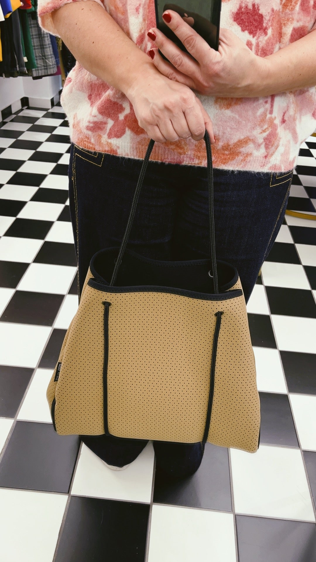 Perforated neoprene (wet-suit material!) totes and pouches from "LOVE FOR WAVES" are perfect for your active days. Use as a handbag, beach bag, market tote or workout necessity, each bag is waterproof and comes with a detachable pouch.