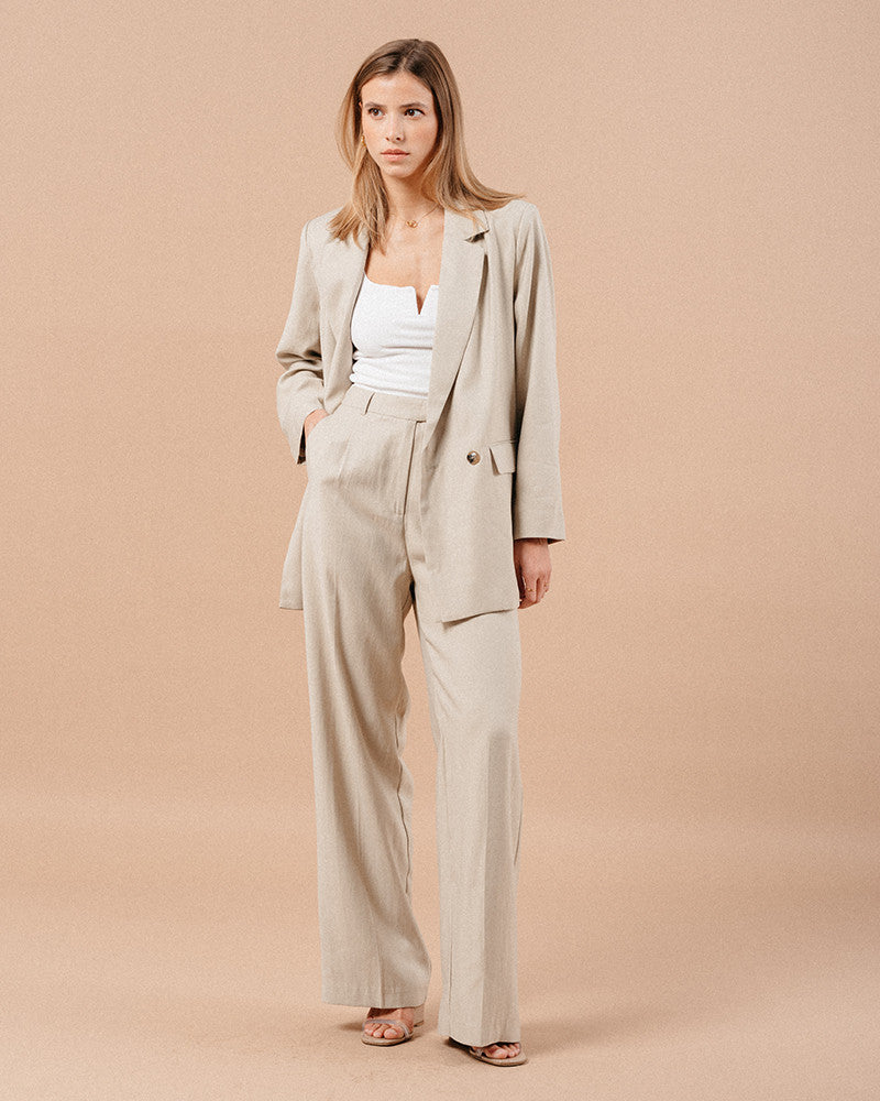 The silhouette: The MALENE long-sleeved blazer is this season's ultra-trendy and stylish piece. The MALENE suit-style blazer can be worn to work or out and can be matched with many different looks and styles, making it a real must-have. Inspired by menswear, the tailored blazer has become a must-have in women's dressing. Its belt at the waist will emphasize your silhouette to give it a feminine and sophisticated look. Don't hesitate to ftallfor the MALENE tailored blazer. A little extra! This trendy piece joins our ""Un brin de vert"" line in natural fibers.