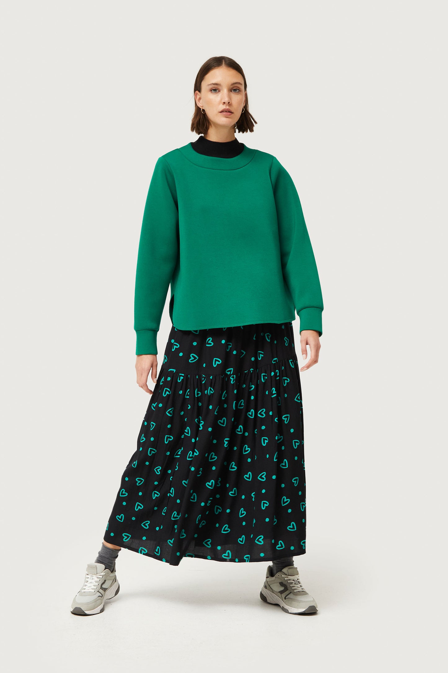 Long skirt with green heart print