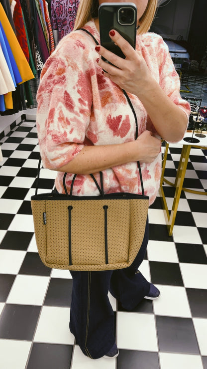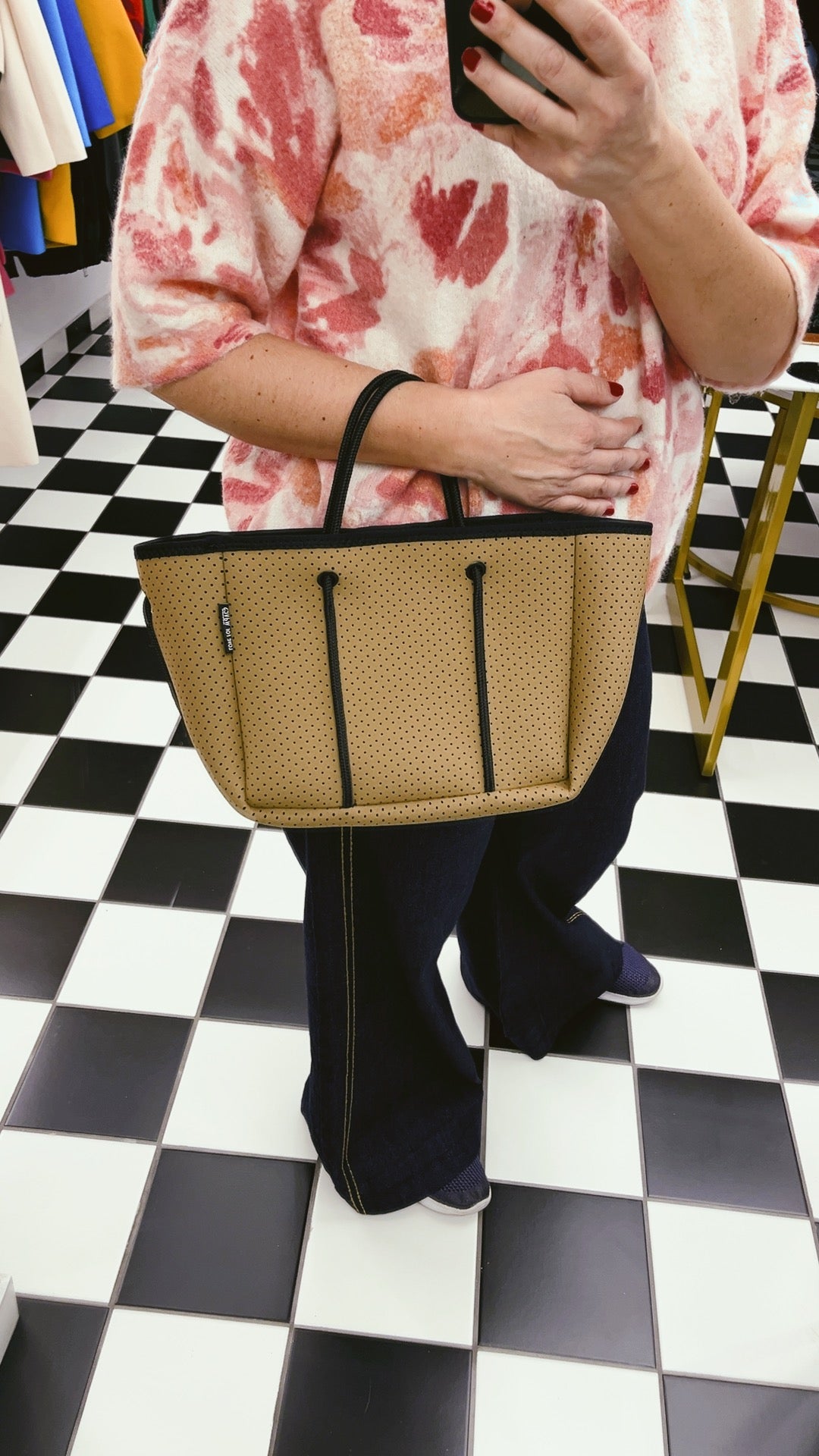 For those who find the neoprene big tote bag a touch too large for everyday, treat yourself in the new mini tote from "LOVE FOR WAVES". The fashionable fun mini tote bag is lightweight, soft, strong and water friendly which makes it great around the boat, beach, pool, ocean and mountains. Included is a detachable wristlet wallet, so you can head to lunch without packing up all your gear. Handles and corner reinforcements made with matching colors sailing rope.