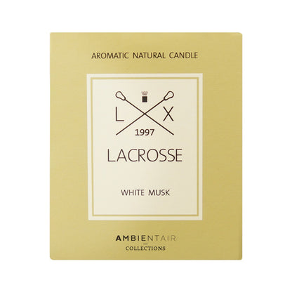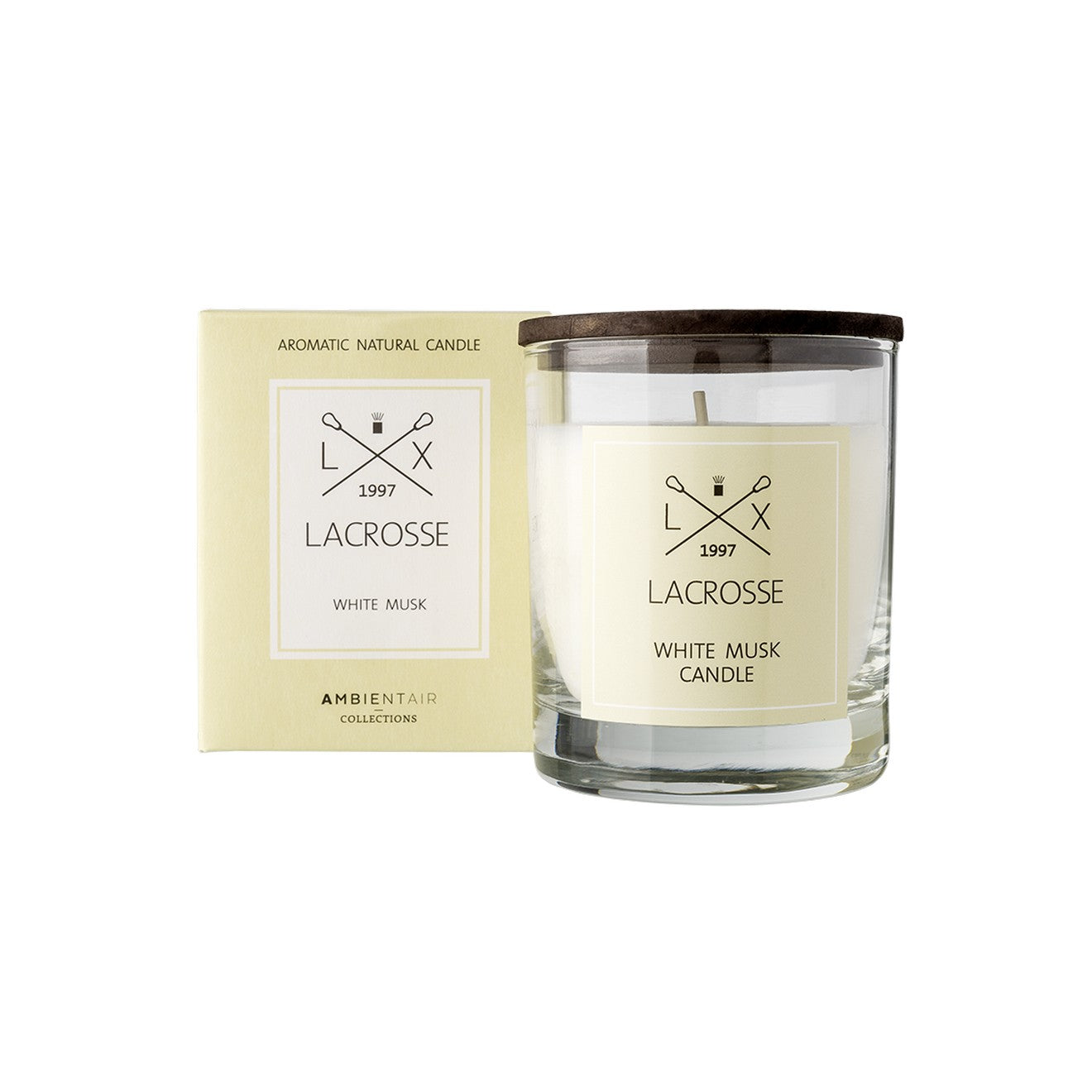 Τα αρωματικά κεριά μας δεν είναι μόνο για τις περιπτώσεις μπλακ άουτ: υπάρχει ένα για κάθε στιγμή, για κάθε γωνιά, για κάθε διάθεση ή για κάθε ανάγκη. Είναι φτιαγμένα με φυτικό κερί φυτικής προέλευσης, βραδύκαυστα, με ομοιόμορφη καύση και χάρη στη μεγάλη τους διάρκεια διατηρούν το άρωμα μέχρι το τέλος, αρωματίζοντας τον χώρο σας ακόμα και όταν σβήσουν. Η σύστασή τους είναι φυτική και περιέχουν υψηλή συγκέντρωση αρωμάτων και αιθέριων ελαίων. Η συλλογή Lacrosse έχει δημιουργηθεί με το savoir-faire της Ambientair. Το στυλ της συνδυάζει όλες τις εποχές: παρελθόν, παρόν και μέλλον. Ένα ντελικάτο White Musk δημιούργημα, με φλοράλ ίριδα που ξεφεύγει από την κλασική προσέγγιση. Ζεστό και μοναδικό όπως η φύση. Ένα δυνατό, γήινο ποίημα. Νότες κορυφής: Γεράνι, όζον και νότες λουλουδιών. Μεσαίες νότες: Ίριδα και βρύα δρυός. Νότες βάσης: Μόσχος και λευκά ξύλα. Η διάρκεια και η ένταση αρώματος αντιστοιχούν σε 40+ ώρες ορθής καύσης.